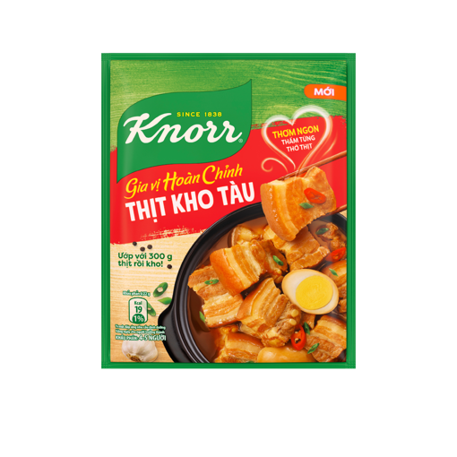 – Knorr Gia vị Hoàn Chỉnh Thịt Kho Tàu là tuyệt chiêu cho món thịt kho sánh màu vàng nâu, ngon đậm đà.