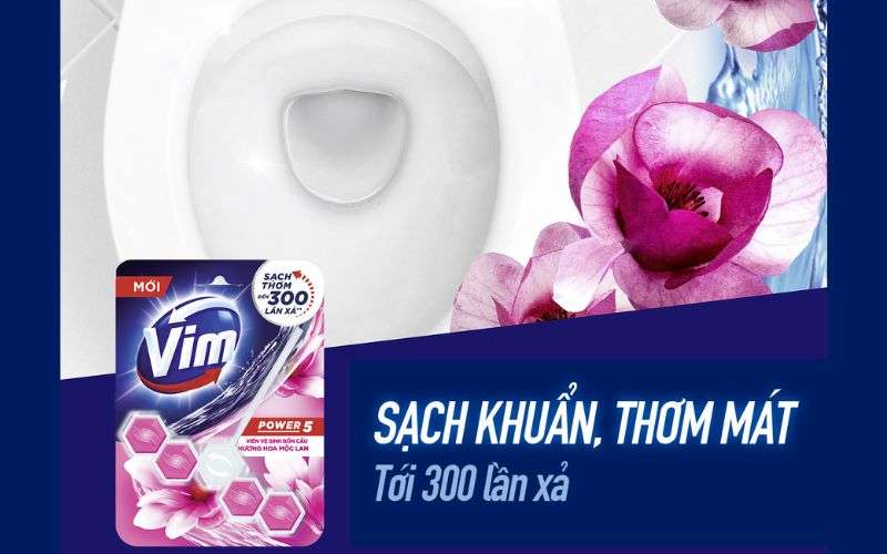 VIÊN VỆ SINH BỒN CẦU VIM POWER5 HƯƠNG HOA MỘC LAN MỚI- SẠCH THƠM ĐẾN 300 LẦN XẢ