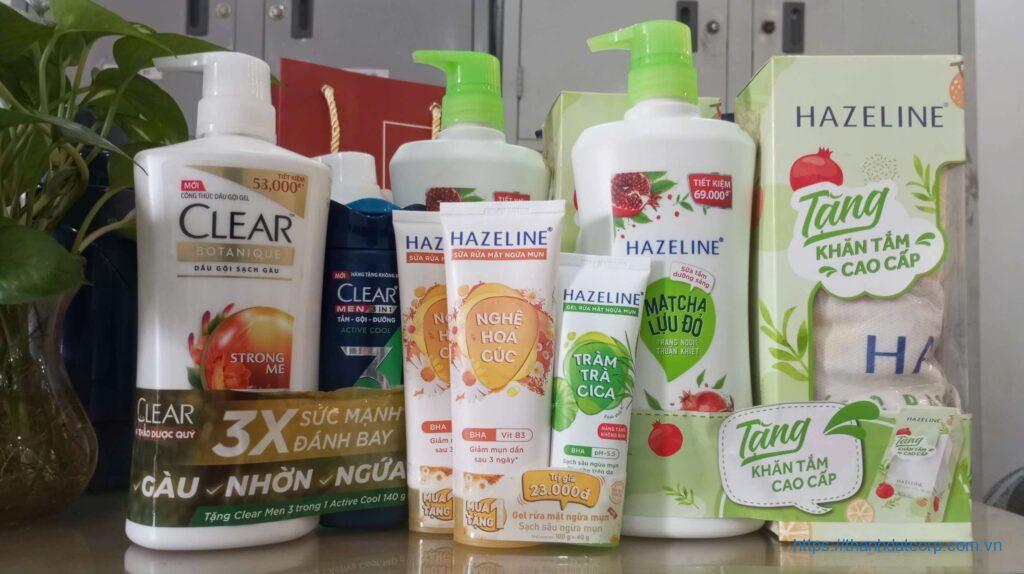 - Dầu gội, sữa tắm: Dove, Clear, Sunsilk, Lifebouy,..